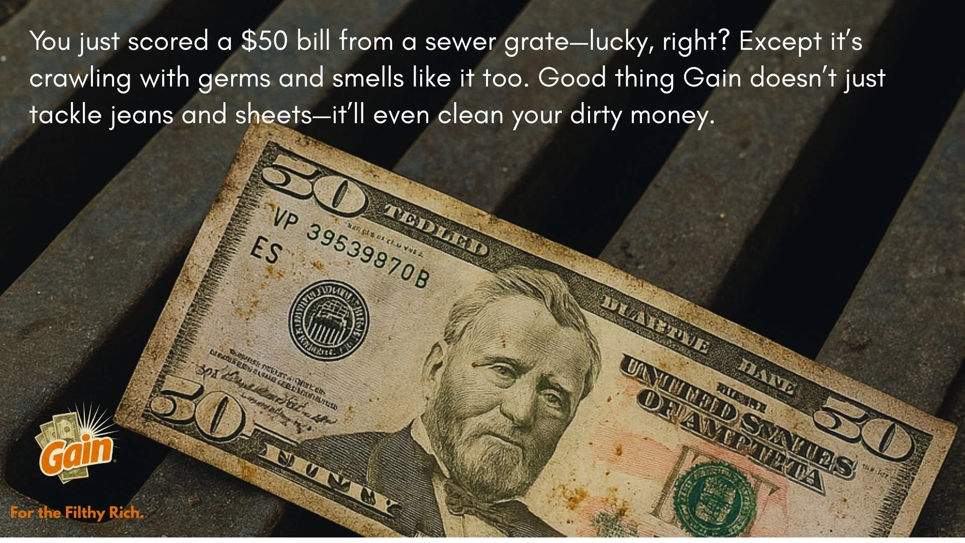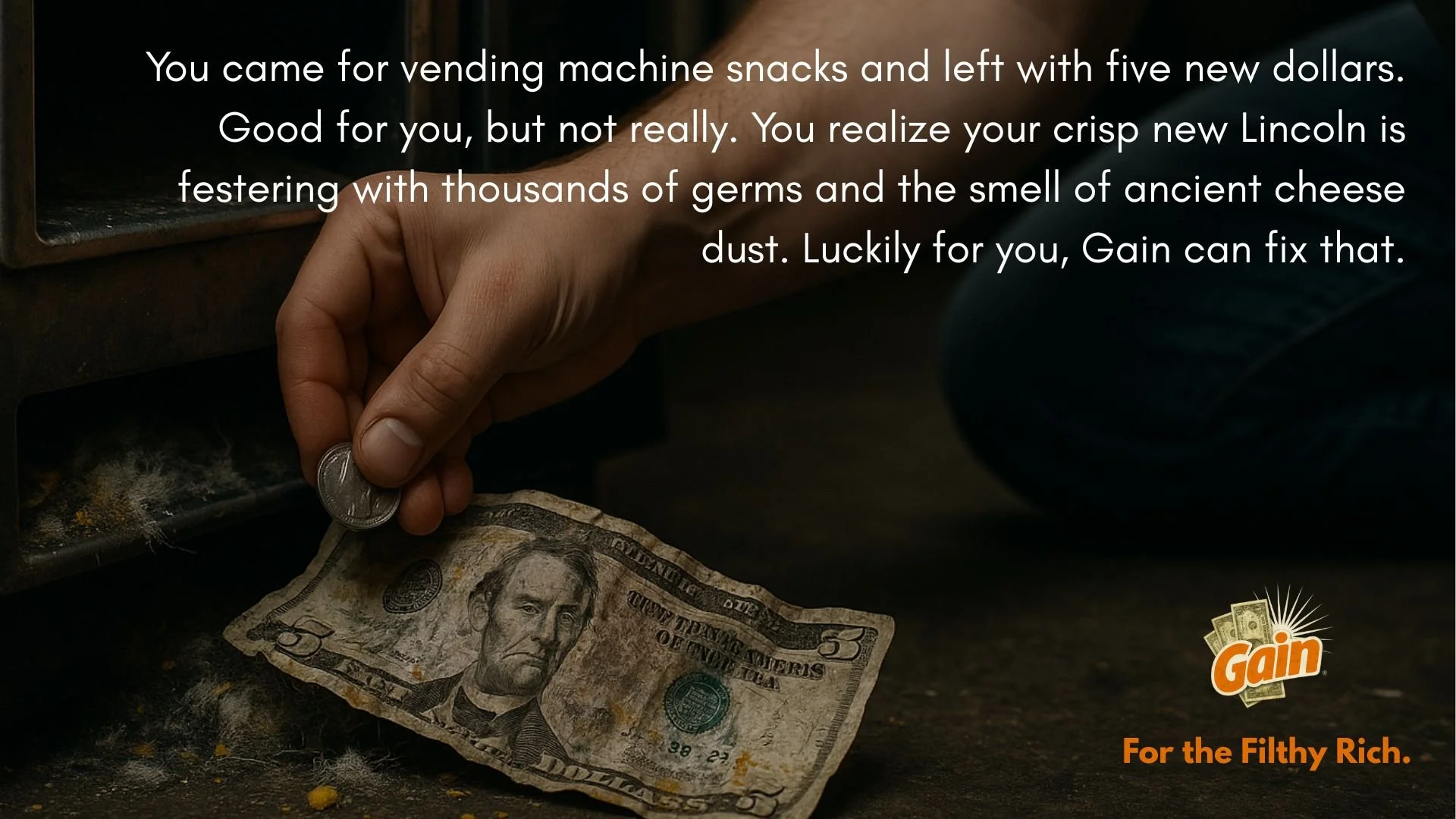 Cash is one of the dirtiest things we use, but one of the only things we never clean. To prove Gains cleaning power, we’re cleaning the dirtiest thing people have…their cash.